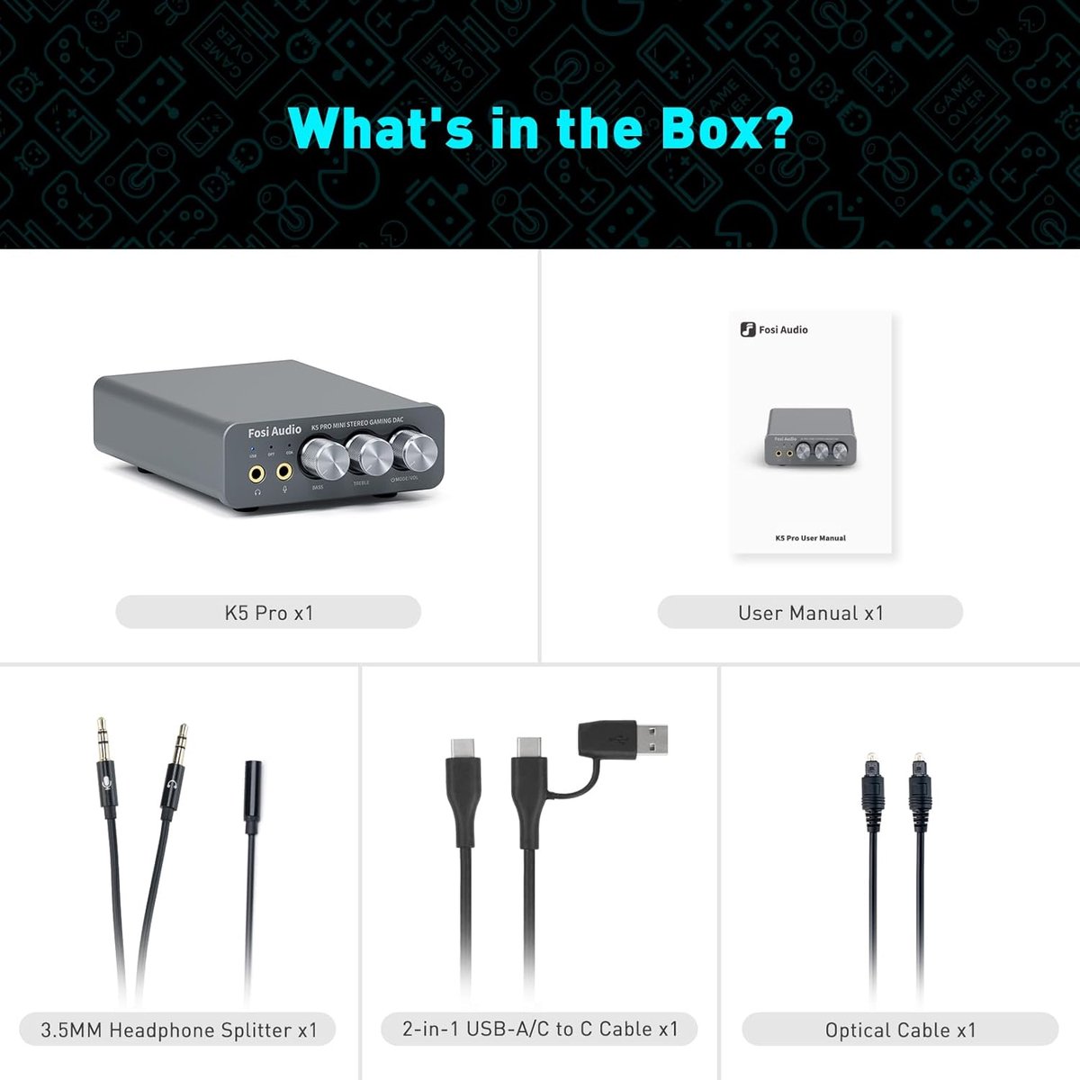 Fosi Audio K5 Pro DAC Ampli Casque – USB-C / Coaxial / Optique vers Jack 3,5 mm / RCA – pour Gaming
