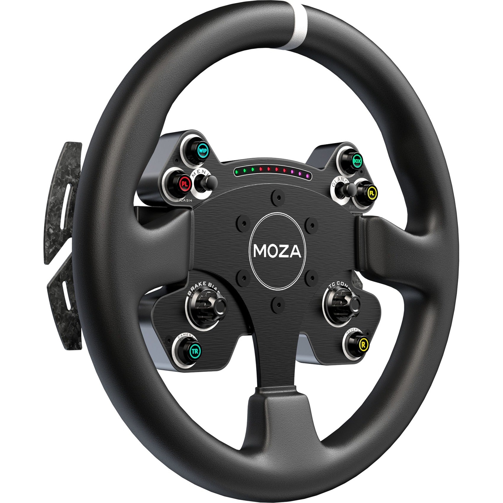 Le volant CS V2P est doté de dix LED RGB lumineuses qui servent d'indicateurs de régime et de changement de vitesse et peuvent être personnalisées en sept couleurs différentes pour ajouter une touche unique à la configuration de course. Le réglage des lumières et la programmation des boutons s'effectuent facilement via le logiciel MOZA Pit House. La technologie de signal sans fil 2,4 GHz de MOZA garantit une expérience de course facile et sans tracas et a prouvé, lors de milliers d'heures de test, qu'elle était plus durable et plus stable que la technologie câblée.